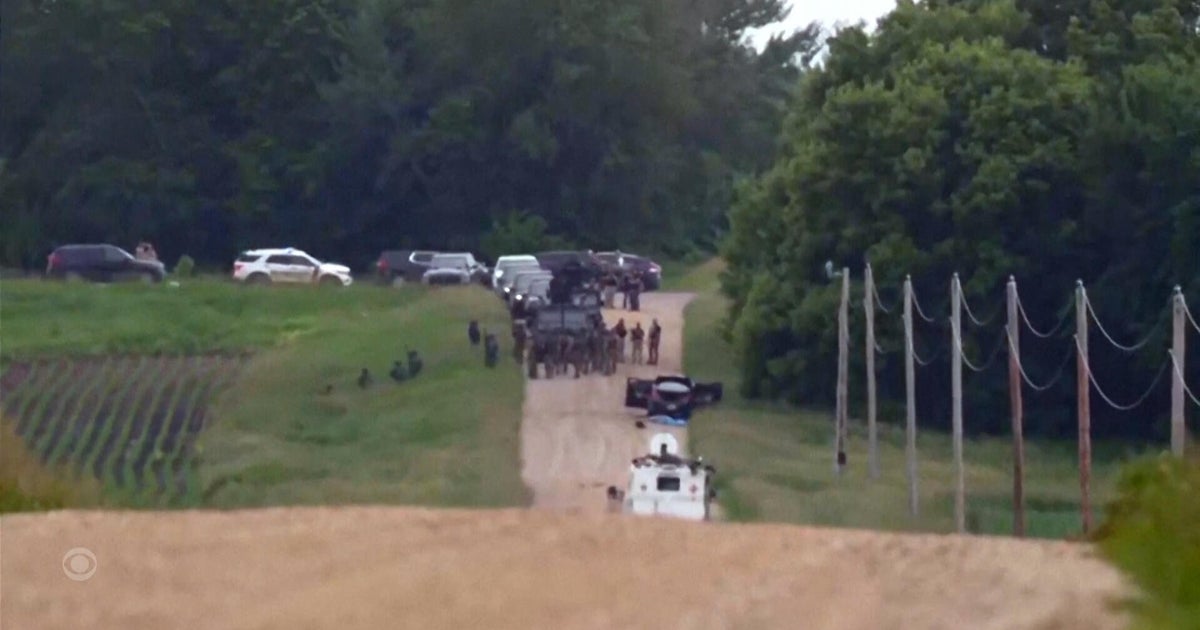 SWAT teams rushed to a remote highway in rural Minnesota Sunday where police say they found a car and cowboy hat belonging to the suspect in the targeted shootings of two state lawmakers. Jennifer Mayerle of CBS Minnesota reports.