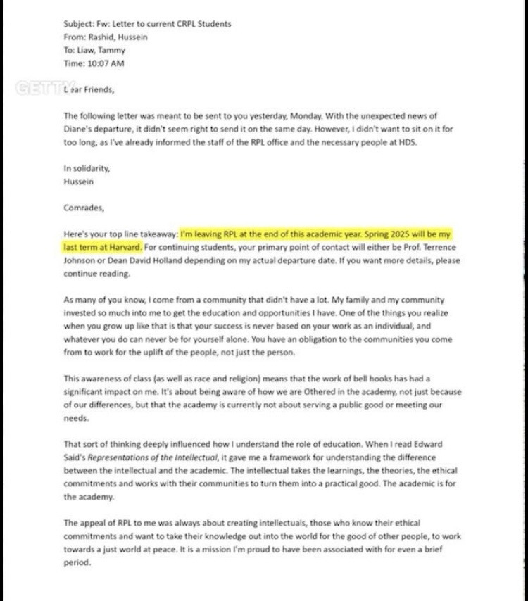 While UTS praised Moore and Rashid’s experience, it makes no mention of their time at Harvard.