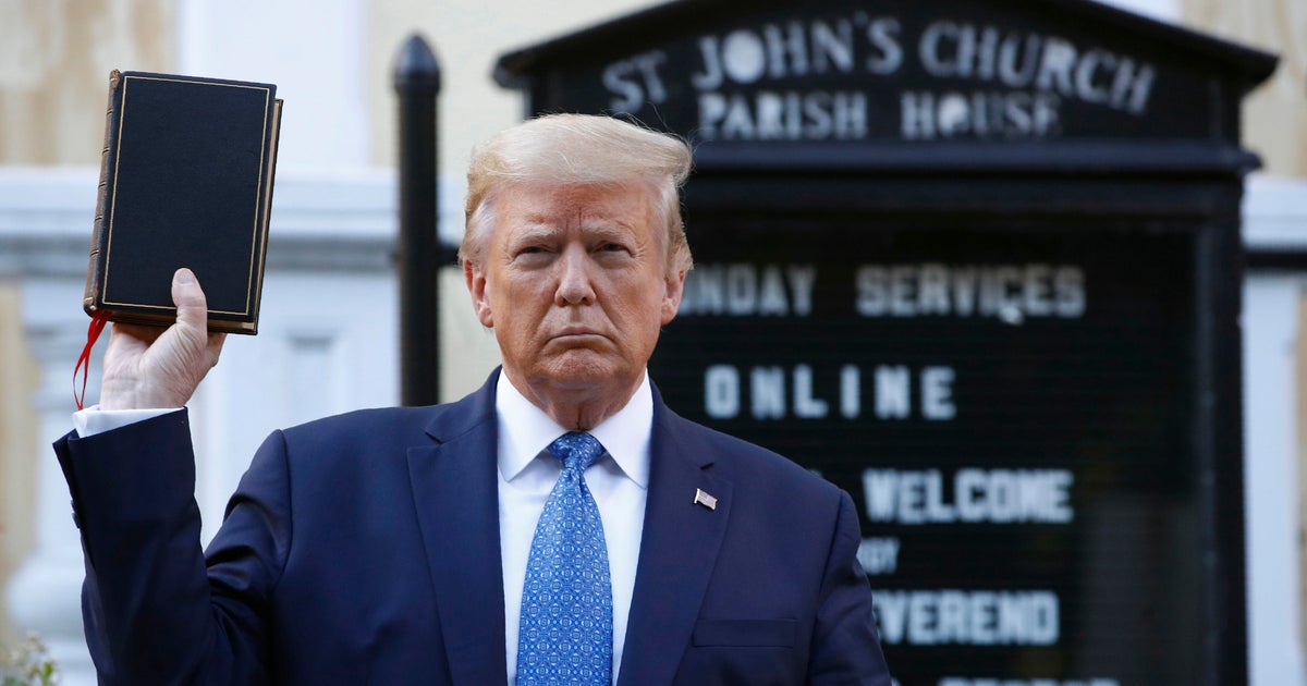 In the video, Trump blended religion with his campaign message as he urged viewers to buy the Bible, inspired by Greenwood’s ballad, “God Bless the USA.” The Bible includes copies of the U.S. Constitution, Declaration of Independence, Bill of Rights and Pledge of Allegiance.