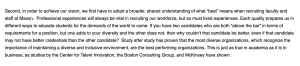 “Professional experience will always be vital in recruiting our workforce, but so must lived experiences,” Washington wrote. “If you have two candidates who are both ‘above the bar’ in terms of requirements for a position, but one adds to your diversity and the other does not, then why couldn’t that candidate be better, even if that candidate may not have better credentials than the other candidate?”