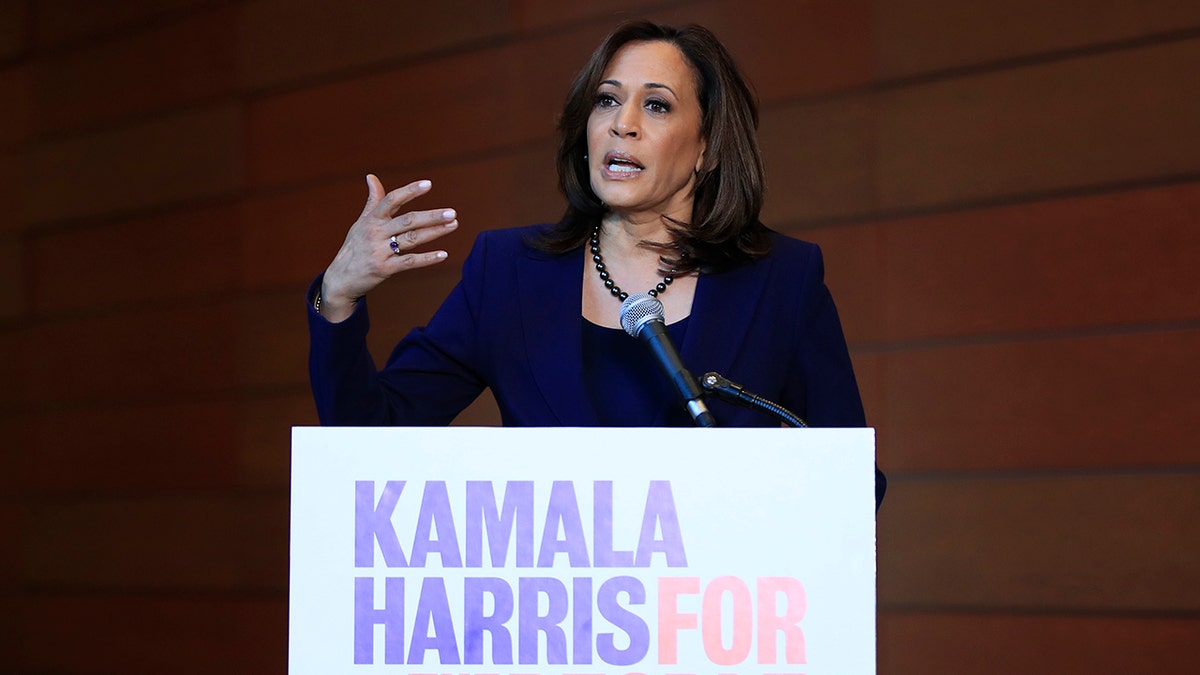 Then-Sen. Kamala Harris, D-Calif., speaks to members of the media at her alma mater, Howard University, on Jan. 21, 2019, in Washington, following her announcement that she would run for president that year. (AP/Manuel Balce Ceneta)