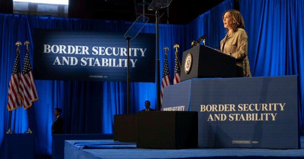 Douglas, Arizona — During a visit to the U.S.-Mexico border on Friday, Vice President Kamala Harris vowed to keep President Biden’s asylum crackdown in place if elected, solidifying Democrats’ embrace of more stringent immigration rules.
