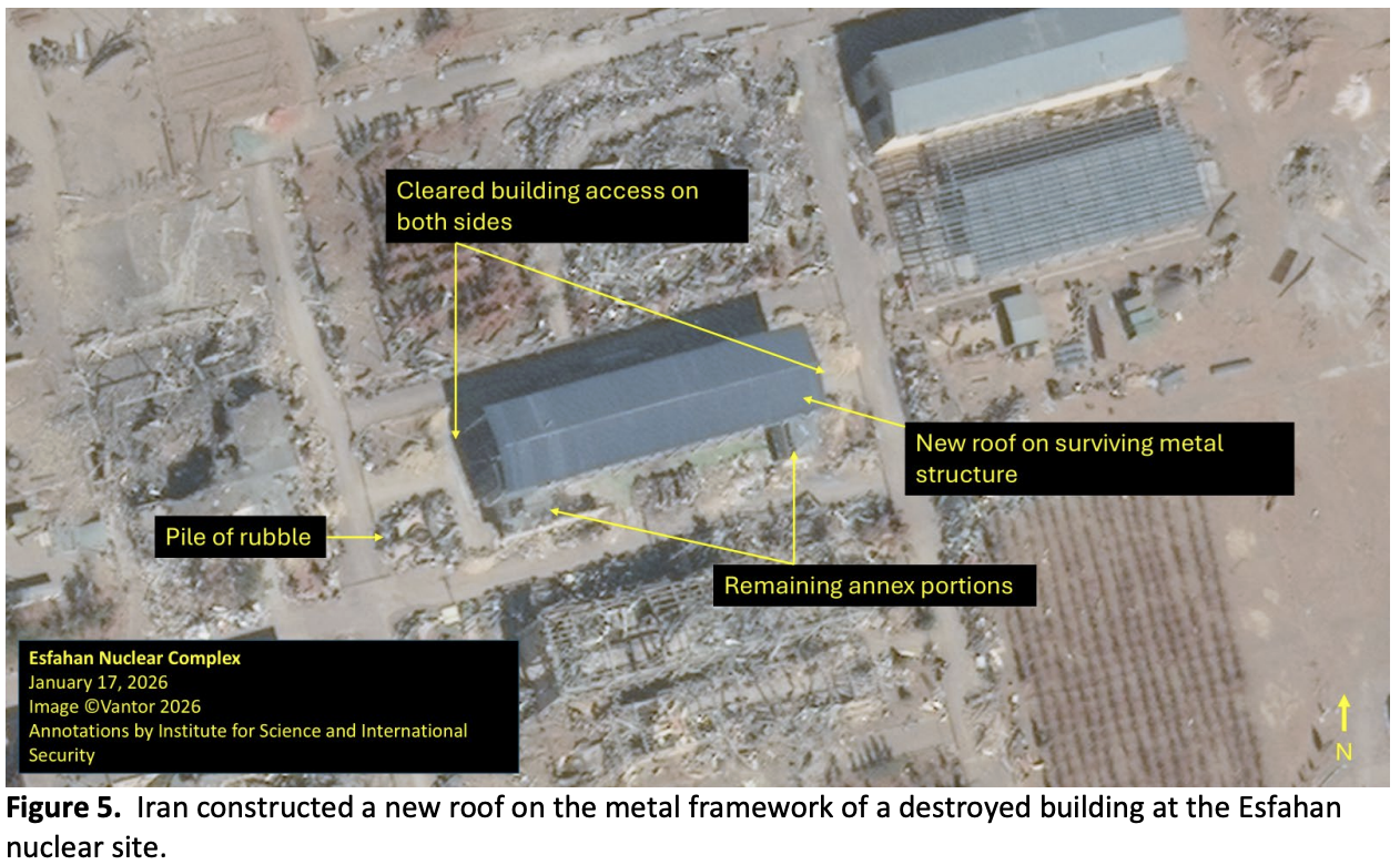 Efforts to rebuild any part of the site may mean that the Islamic Republic “assessed the remaining structure is worth preserving,” particularly because it is believed to house the equipment used to enrich uranium to levels needed for a bomb.