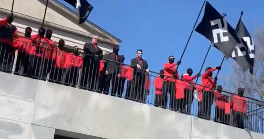 Witness videos posted on social media over the weekend showed a small group of people, wearing red shirts and black masks, giving Nazi salutes and carrying a black swastika flag as they marched through downtown streets in broad daylight. Clips showed the marchers passing through Broadway, the city’s bustling music row, and by the state capitol, chanting “Sieg Heil” and calling for deportations.