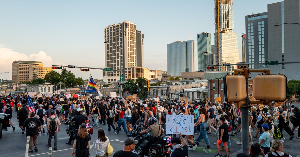 A protest on Monday began at the Texas State Capitol and then moved through downtown Austin, CBS affiliate KEYE-TV.