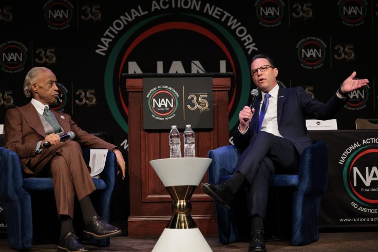 Racial issues were front and center at the convention, in which Sharpton held “fireside chats” with nine Democrats considering presidential bids in 2028. In addition to Harris, Moore, and Pritzker, Sharpton interviewed Pennsylvania governor Josh Shapiro, California congressman Ro Khanna, Arizona senator Ruben Gallego, and others. Sharpton in those interviews focused largely on issues like DEI and investment in black businesses, avoiding hot-button topics like the United States’ 250th birthday celebration and reparations for slavery.
