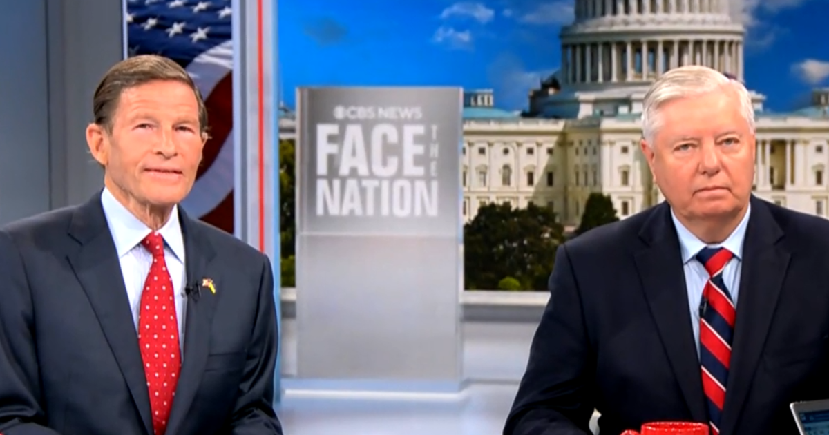 MARGARET BRENNAN: We’re now joined by two senators in a rare, bipartisan interview: Republican Lindsey Graham and Democrat Richard Blumenthal. They’re co-sponsors on legislation to put secondary sanctions on Russia. Good morning to you both.