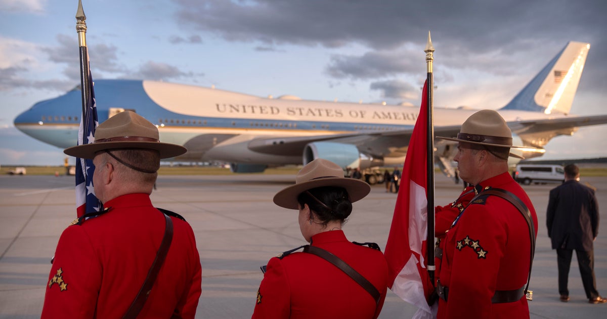 The first thing on Mr. Trump’s schedule Monday is a bilateral meeting with Canadian Prime Minister Mark Carney, whom Mr. Trump met last month at the White House. The rest of the day will consist of meetings with the G7 leaders, as well as the traditional “family photo” of those leaders and a cultural event to cap off the night.
