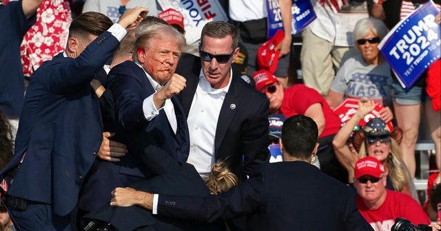 Several shots rang out while Trump was speaking on stage. Video showed the former president immediately touch his ear and then crouch to the ground, with his Secret Service agents rushing the stage. Some blood could be seen on his face as he stood up and held up his fist to the crowd. He was rushed out and the Secret Service later confirmed that he was safe.