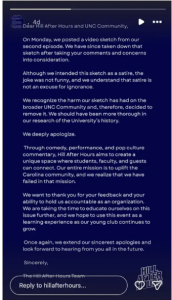 The public-facing response to the uproar from the DTH and Hill After Hours was nothing less than complete surrender: retraction, abject apologies, acknowledgments of privilege and promises to pursue self-betterment.