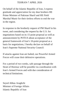 “Diplomatic efforts for peaceful settlement of the ongoing war in the Middle East are progressing steadily, strongly and powerfully with the potential to lead to substantive results in near future,” Sharif wrote on X less than four hours before Trump announced the temporary ceasefire. “To allow diplomacy to run its course, I earnestly request President Trump to extend the deadline for two weeks.”