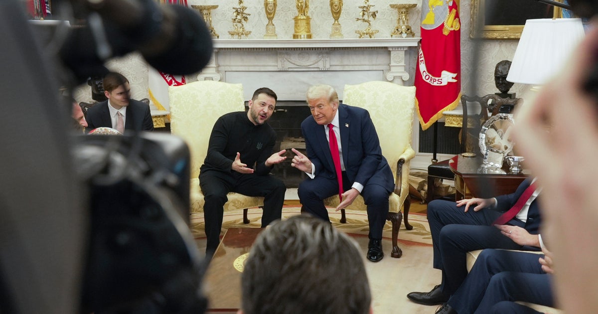 President Trump, Ukrainian President Volodymyr Zelenskyy and Vice President JD Vance appeared on camera Friday in a tense Oval Office exchange before the U.S. and Ukraine were planning to sign a rare earth minerals deal.